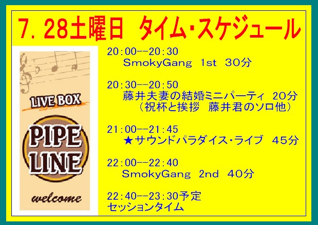 後半、ディープフライのメンバーも駆けつけてくれて感謝です。藤井夫妻の今後の幸せを皆で願いつつ、更なる音楽活動を目指す中、毎回お世話になっているパイプラインのマスターにも感謝♪