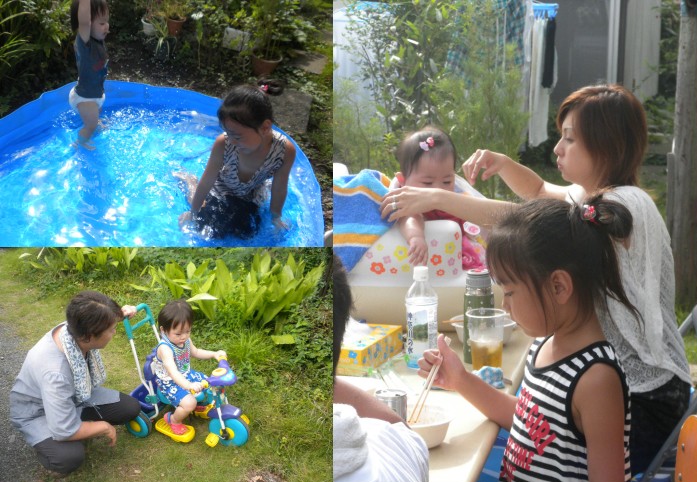 毎年恒例、夏のファミリーバーベキューは朝からの悪天候で厳しい中、昼過ぎから天候も回復して何とか実施できた。今年は初参加の次男の子供を含めて、孫3人合計9人となり大賑わいの中、全員が幸せで楽しい一日となった。
