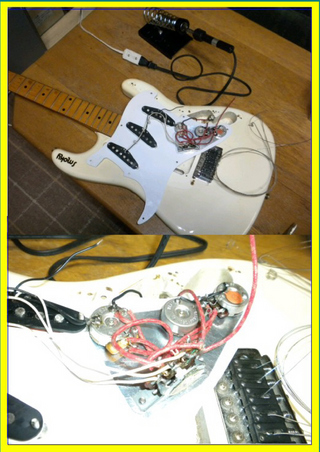 ついでに外したテキサススペシャルをコンポのストラトに搭載してみた。配線ケーブルもBELDENを使い、半田付けも丁寧にしてみたら・・・・あれっ前より音が良くなった?もしかしたら使えるギターになるかもとピックガードやカバーパーツを全て白に統一してお洒落にしてみた。