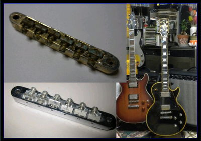 69年生産のレスポール・ブラックビューティは生産41年目。人間で言えば・・・?十代からのワンオーナーギターも老いて各パーツもボロボロになり少しづつ手直ししてきたが、今回はブリッチを交換した。同年代の