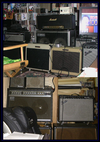 築30年も経った我が家のリビングも当初は12畳の広々していたスペースを子供達と駆けずり回った時期もあったが・・・今や完璧な楽器倉庫に様変わりしてしまった。ギター達は工夫して壁にブル下げたりして床スペースを確保しているが、問題なのがアンプ達だ。ザッと数えて12台位で床面積の何割かを埋めてしまっている。更に置物化した大型マッサージ機や健康機器が置いてあるので木造の床も危ない状況。 そんな部屋に新たに重いオールドアンプが仲間入りする予定だ。数日前、茅ヶ崎の極楽仲間・音道のリーダーから、使わないから里親になって欲しいと頼まれ、同じアンプを所有しているにも関わらず戴くことにした。70年代国産名機のグヤトーン・オールチューブアンプFLIP2000で、大昔に石黒ケイの兄から譲り受けた物と同じで当初はジャズ向きのハイエンド機種だった。出力も80ワット近い大音量タイプでナント云っても重量が30`近いので移動が大変なアンプ。これで部屋の床は300キロ以上のアンプ達によって抜けてしまうかも知れない。いや言ってる当人も合わせれば400キロオーバーになる?床の心配もさるもの、足の踏み場も無い部屋の掃除が出来ずに妻が嘆いている。 |