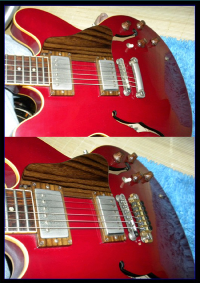 さっそく335に取付けた。各弦の微妙なチューニングが右手で出来るので演奏中も重宝する。
