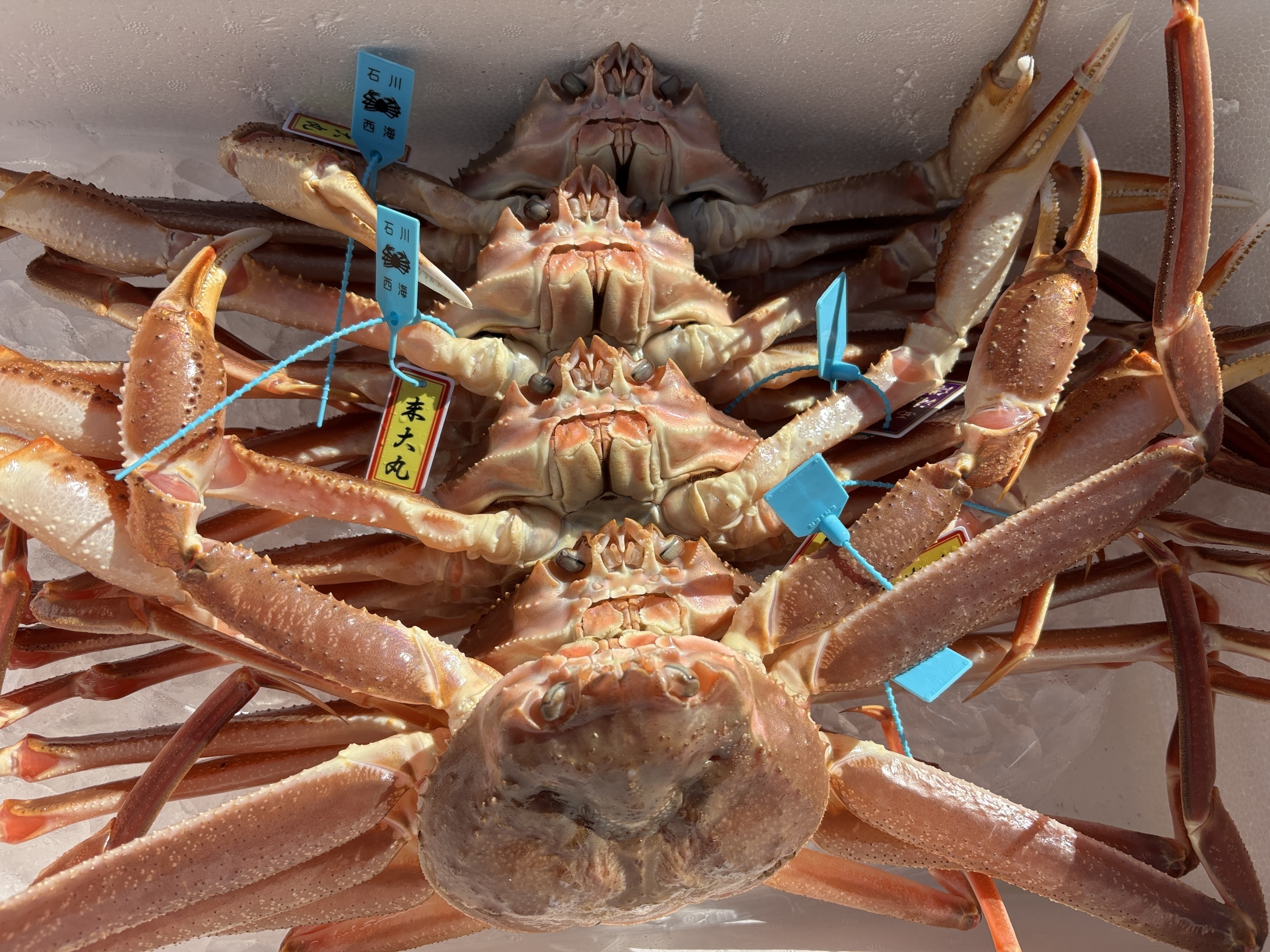 | 本日11/10、営業です | 今朝、朝イチで金沢港直送便が到着 『活・香箱がに』50杯 ただ今、真水にて締めているところです 夕方までには『香箱ケーキ』『炊込みご飯』仕込みます 今回は活きの良いのがいたので『香箱がに醤油漬け』仕込みます 食べごろは今週末かな(限定8杯)