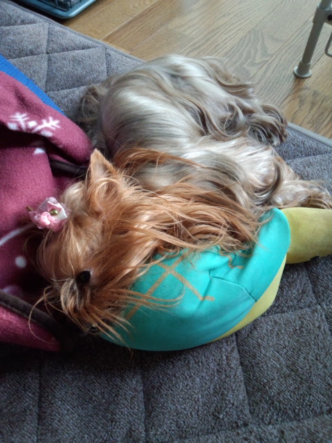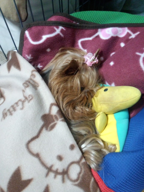 エルはお布団かけてもらって、カメ吉と仲良くねんね♪