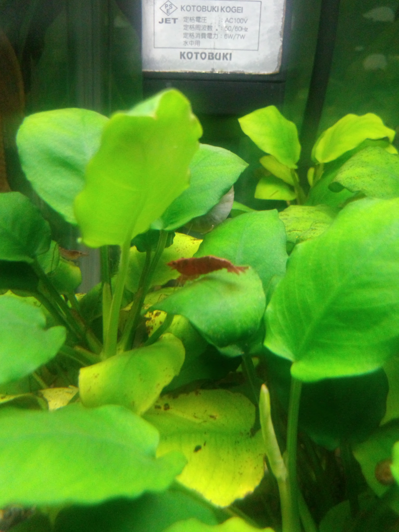 赤い大きいメスのエビちゃんがテクテク歩いてて、