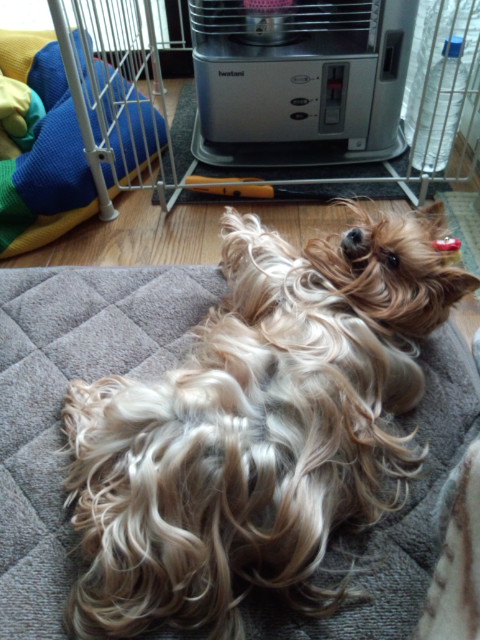 ヘソ天からの〜、モップ。