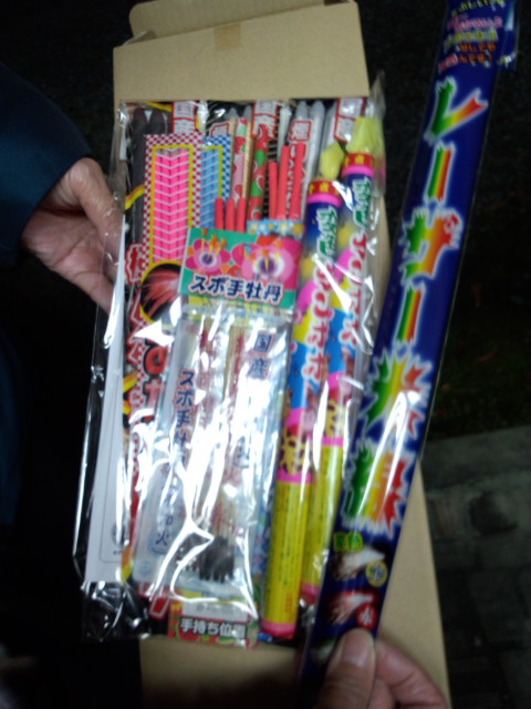 夕食の前に、宿のお庭で家から持参した花火をしました☆
