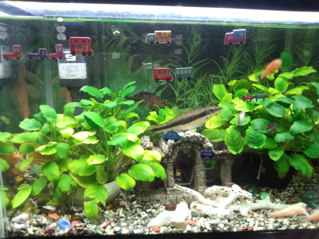 甥っ子が水槽に車のシールを貼ってしまいました(^_^;)