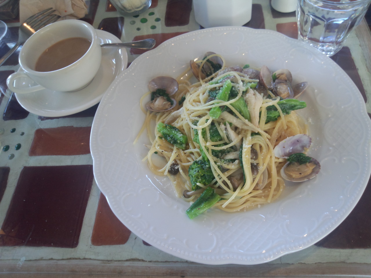 アサリとキノコとナノハナのオイルパスタ( ̄∀ ̄)