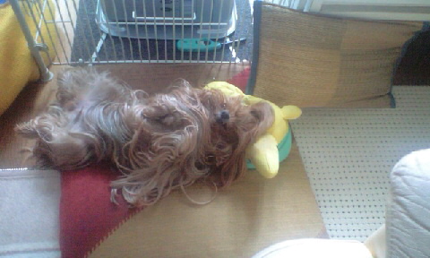 しかも、カメちゃんを枕にしてる( ̄∀ ̄)
