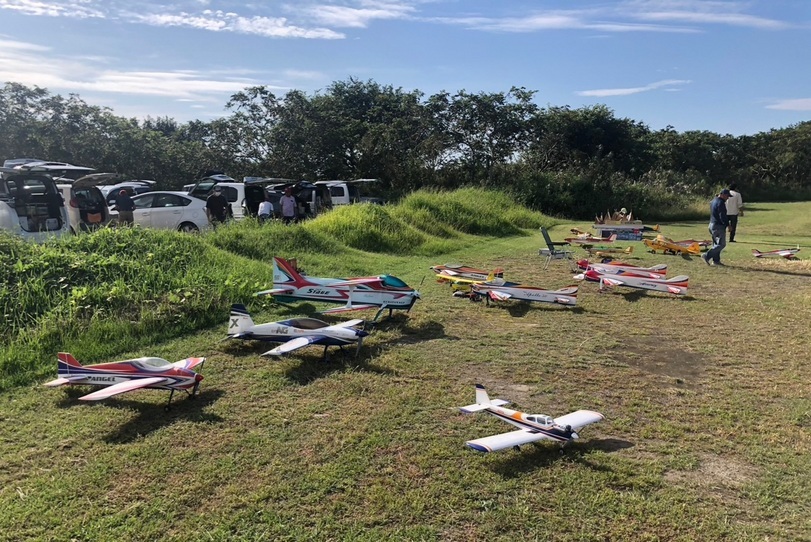 競技中はヤジり捲ってパイロットの感を狂わせ、タイムを見ながら一喜一憂してみんなで楽しんでました。 楽しみの賞品も役員さんの心使いで公平性を考慮して用意されていて成績の悪い人も喜んでいましたね。😂 また、クラブで調達した小型機や大型機のキットなども陳列し、希望者で✊✌️✋勝者がGetしこちらも思わぬ逸品が手に入った人も喜んで盛り上がりましたね。