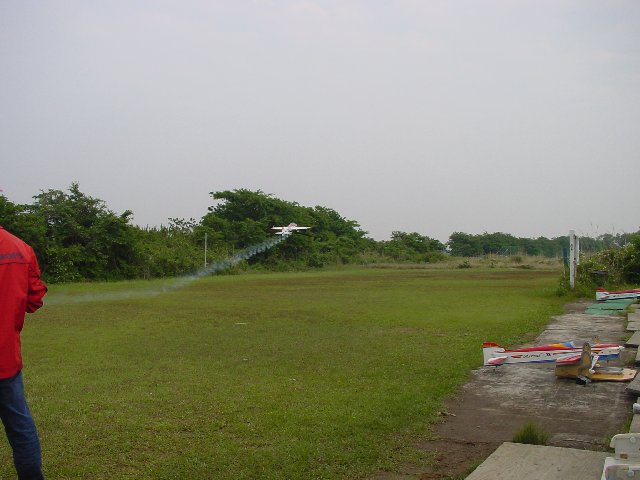 自分の前の位置まで滑走して来たら離陸させます。 離陸の角度は一定の角度で上昇し、上昇角度を維持しながら90度旋回して翼を水平に戻して終了です。 単純なパターンですが毎回違って来ます。