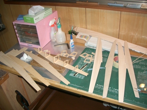水が温み出すと今度は水上機の出番です。我がクラブでは毎年、水上機ツアー?を開催しています。ここのところ、昨年来より小型機のスバルやフラミンゴを製作してきましたが、折角ですので水上機バージョンも楽しみたく、フロートの製作を始めました。クラブメイトより図面を借りて材料の切り出しが終わった所です。