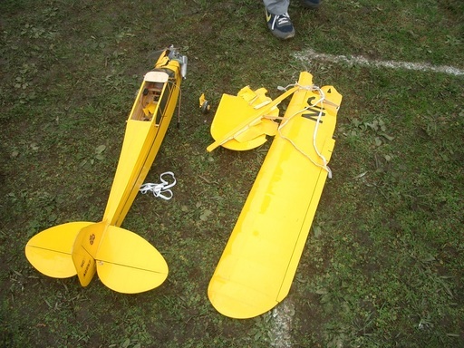 リボンくぐりのポールに翼を接触させ、餌食になったパイパーカブ