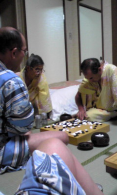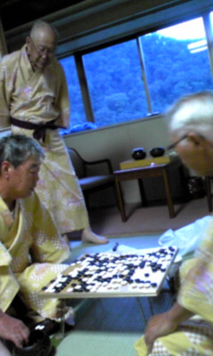 酒を片手に 囲碁を打つ 袖の月 | ||