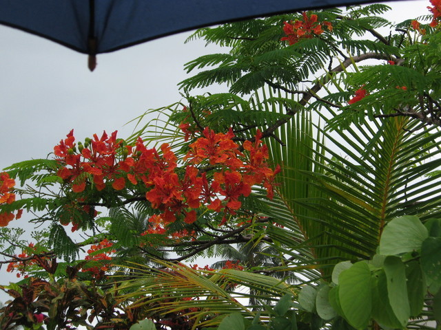 スコールに濡れる