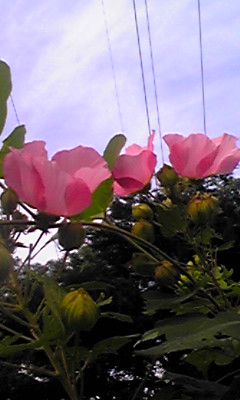 散歩路 犬の見上げる 紅芙蓉 | ||