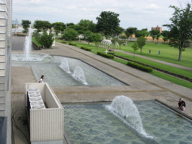 芸術的な噴水が30分毎に吹き上がる