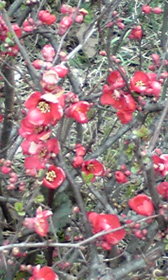 水面染め 炎上中の 木瓜(ぼけ)の花 | ||