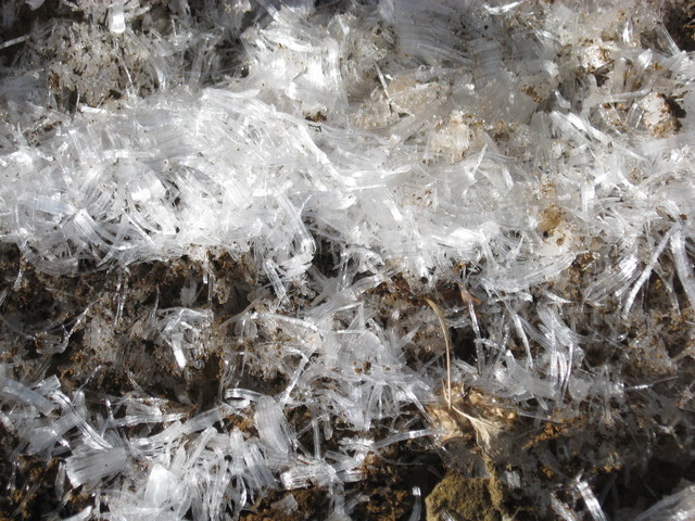 登山道の土壁に 霜柱が立って