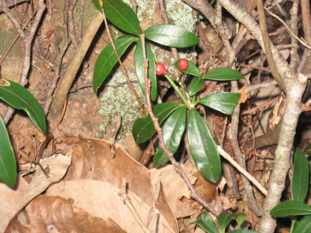 けもの道 糞を辿れば 藪柑子(やぶこうじ)