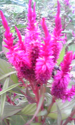 燃え上がる 鶏頭紅し 腹いっぱい | ||