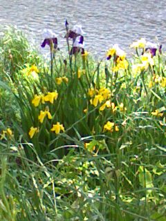 あやめ、かきつばた、野花菖蒲はとても似ていて判らない!多分この写真は黄菖蒲と杜若ではないかと思われるが?判る人は教えてくれませんか!