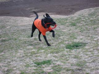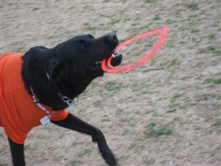 輪っかの赤いフリスビーを見たとたんにスイッチが入っちゃったよ〜 笑