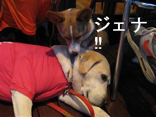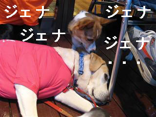 気持ち良さそうに横たわるジェナ。そこへ・・・ちょこが・・・・