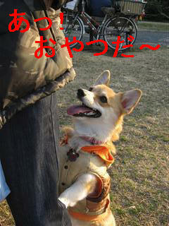 ←「最近、おやつをもらう時は立ってもらうケースが