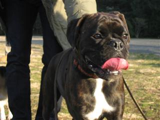 「すっかり大きく逞しくなってきた8ケ月のボクサーのバーモスと