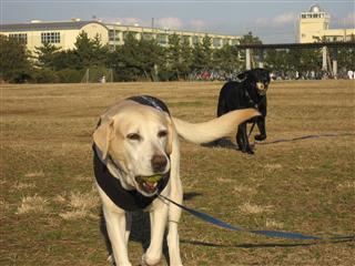 駆け回っていたね〜 初対面と初めて公園の散歩としては