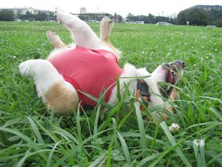 「今日の公園は、涼しいよ!!ん〜〜っ快適、快適!!」