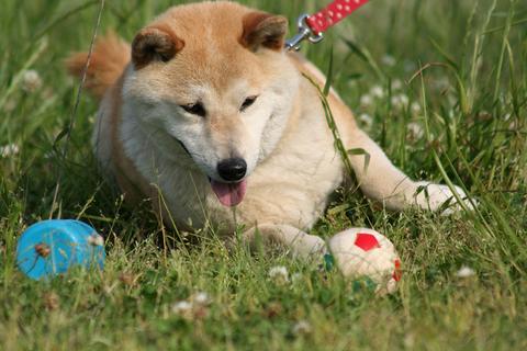 「あのボールが欲しい〜・・・ん〜〜我慢、我慢!!」
