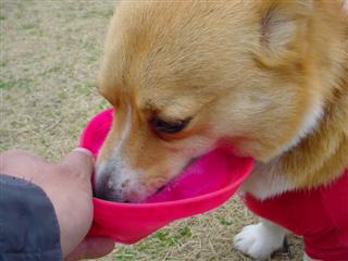 フリスビーが水飲み容器に・・