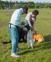 夕方、小梅さんがちびちゃんを連れてきてくれた。最初は犬に逃げ回っていたちびちゃんも、最後にはYUZU、そして大型犬のリロにもえさをあげられるようになったよ。『勇気を出して、頑張ったねぇ』、そして、もうひとつノーリードに挑戦のルコちゃんも途中からは、ノーリードで走り回っていた。なんだかんだで小型犬から大型犬まで入り混じって、入れ替わり立ち代りで25名以上の方が参加してくれた『顔合わせ会』。無事死傷者もなく(笑)特に大きなトラブルもなく、また新しい出会いも会ったようで、ご協力ありがとうございました。差し入れしていただいた方々、準備ならびにテーブルを貸していただいたレナご一家、本当にありがとうございました。