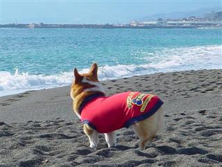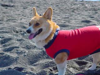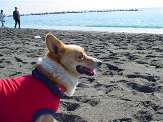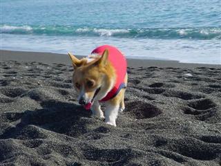 砂浜を思い切り走り回り、息切れして一休み。