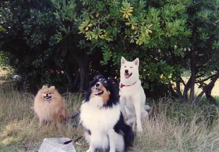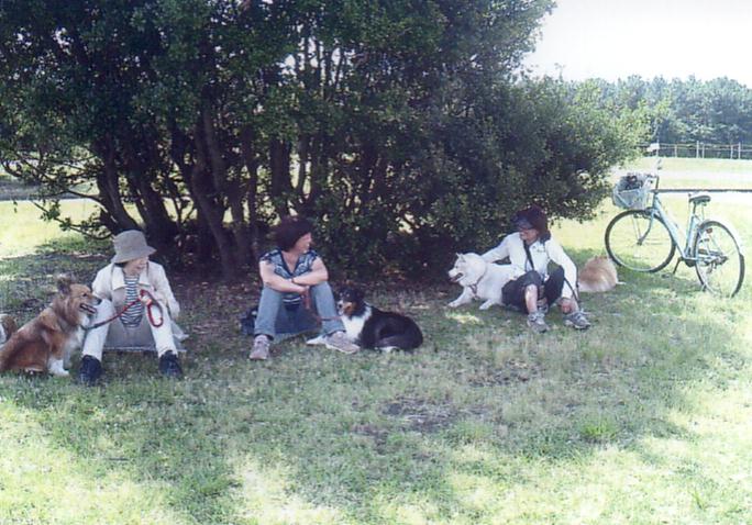太郎と小梅のママ コメントより 「シェルベルちゃん、遊ちゃん、ポメベルちゃん、太郎の4人で真夏の木陰でのおしゃべりは 本当に懐かしいです。このページは公園のワンコ達の「歩み」の貴重なものです。」