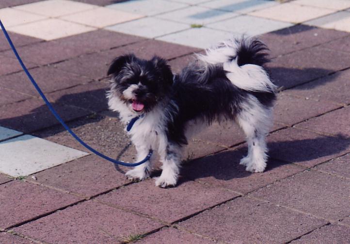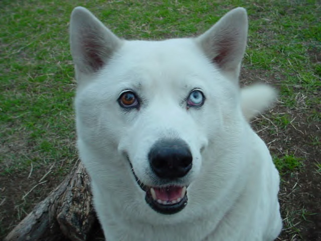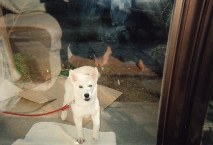 「私、遊です。足を上げて用足しをするので男性?と思われているかもネ。でも女の子ですよ。私の母は純粋のハスキー犬なの、でもね道ならぬ恋に落ちて、生まれたのが私、父親は風来坊。それで困った飼い主が土屋の動物保護センターに一ヶ月足らずの私を置いて行ちゃたの。それから、育てのママに出会うまでの二ヶ月半、犬の世界の掟を先輩犬に教え込まれたの。だから、上下関係にはちょっと煩いのね。ハスキーのMIXという事で引き取り手がいなくて諦めかけた時ママと出会ったの。この機会を逃したらお終りだと思って、腰の引けてるママに愛想を振り撒いて、引き取らせたの。私って結構苦労犬でしょ。だから、イタズラをすると「いい子にしないと。センターに返品しますよ!」て怒られたけど、この頃は、お姉さんに「ママ、返されたセンターも迷惑だから」と言われ、ママも変に納得して言わなくなったわね。それって、どう解釈したら良いのかしら・・ネ。昔の写真を見ると結構スマートだったのね。みんなが会うたびに「遊ちゃん太った?」て言うけど、確かに育ったわね。そろそろ年だから体重を落とさなきゃ長生き出来ない?ううん、私は、ヒート君やシェルベルちゃんの分も、太く・長〜く生きてやる!」