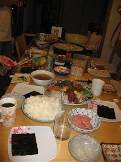 yuzu「早朝は大磯海岸に散歩〜 強い日差しにもかかわらず風は秋を感じさせる爽やかだったよ〜 砂浜を走り終わって、防波堤の上でひと休み〜ふぅ〜笑」 夜は、飼主たちの恒例?定例?の晩餐会(オフ会)〜 今日のメニューもレナパパ任せで、手巻き寿司&餃子大会〜 レナパパからのメンバーへの指示メールは下記の通り 『役割分担は次の通り ★ココママ⇒餃子制作&仲居さん ★こたママ⇒寿司飯制作(桶含む)&卵焼き? ★ジェナポン〈別名:暗黒卿〉⇒飯炊き(5合) ★あたくし⇒寿司タネ買い出し(下こしらえ)&汁もの制作 ★誤無理道教祖(YP)⇒テーブル係&ドリンク買い出し ★チョコパパ(ママ)⇒寿司を巻き巻きする海苔調達 &潜水艦の写真撮影(←非常に重要)』 手作り餃子(薄皮、厚皮)、チーズケーキ、手巻き寿司、味噌汁 全ていつも通り大変美味しゅうございました。 7時開始予定で7時半前に食べれた事に大感激で〜す。笑 早々の準備頂いたみなさんありがとうございました。*食後は、レナパパの休日のほとんどを費やした、大作の潜水艦完成記念撮影〜詳細は次回コンテンツで紹介しますのでお楽しみに・・・・美味しかった〜手巻き寿司のネタ〜 そして我慢できず思わず試食〜笑