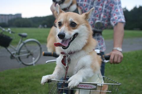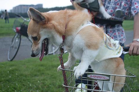 昨日の分まで走るつもりか?公園に着くなりハイテンションのCOCOでした・汗」 COCO「ママ〜初めての前かご・・・んっ??高いよ・・・助けてくれ〜・・」
