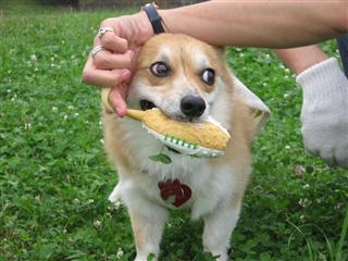 「パパ〜ちょこにもおやつをちょうだいよ〜」「わかった!わかった!!」 ちょこパパ「指の間のおやつ見つかるかな??・・笑」「パパ〜!ないよ〜悲」 大好きなおもちゃを放さないで歩くCOCO・・・ 首輪ならぬ口輪だ〜笑 「昨日もたくさん走り回っていたね!!勢い余って2回転してたの見たぞ〜笑」