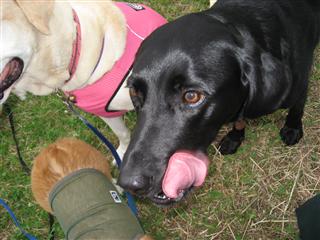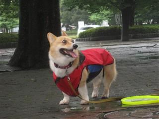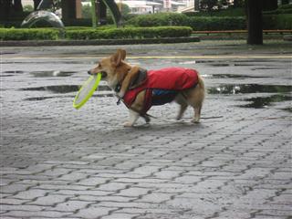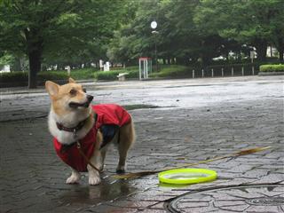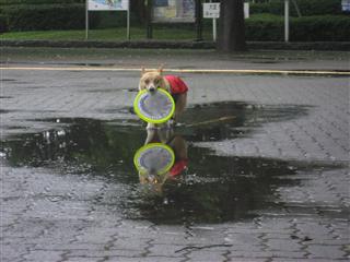 「こんな雨の中。本当にやるの???・・・・・・」 「風も強いよ〜・・・・・いやだなぁ〜・・」 「ちっとも楽しくないよ〜 もう帰ろうよ・・・・・・」 「んっ?雨風が止んだね!!少しやる気になってきたよ〜 投げて投げて〜〜」