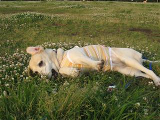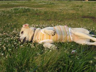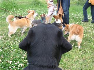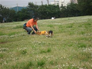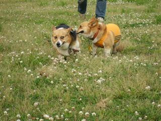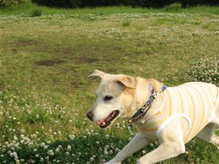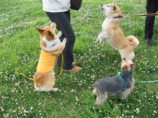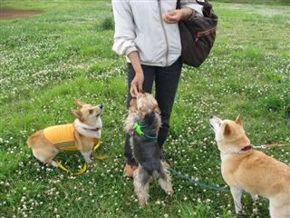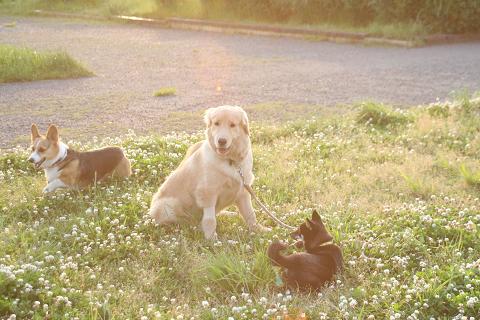 ↑レナ「遅くなりました〜」 ↑ちょこをよそに写真を撮り回るちょこぱぱ〜 ↑サチを相手に遊ぶユウと仲裁に入るちょこ〜*以下ちょこぱぱ写真です。 ↑シロツメクサの花の中で遊び回るサチ〜