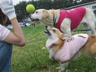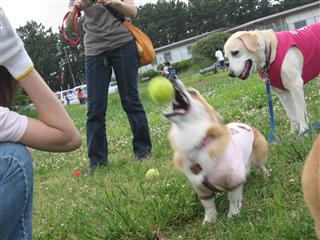 ↑「ボール投げて〜ボール投げて〜」しばらくすると元気に遊ぶCOCOでした。