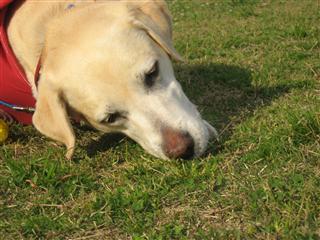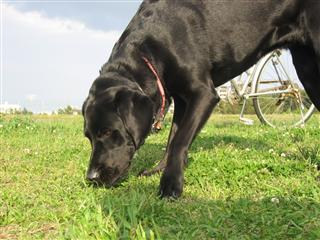 『ムシャムシャ・・』 『んっ??見てた??』 『良く草喰う犬だ〜』ははは・・