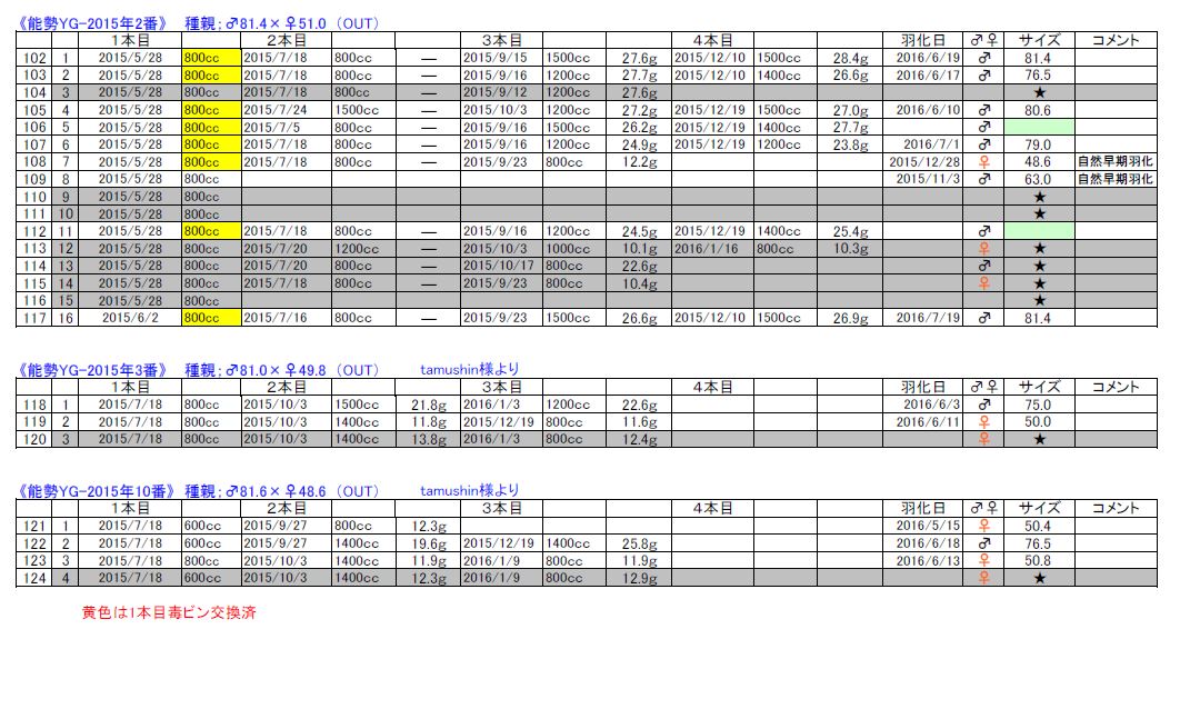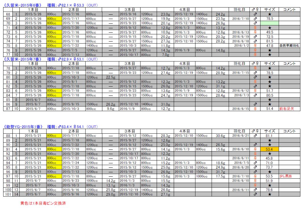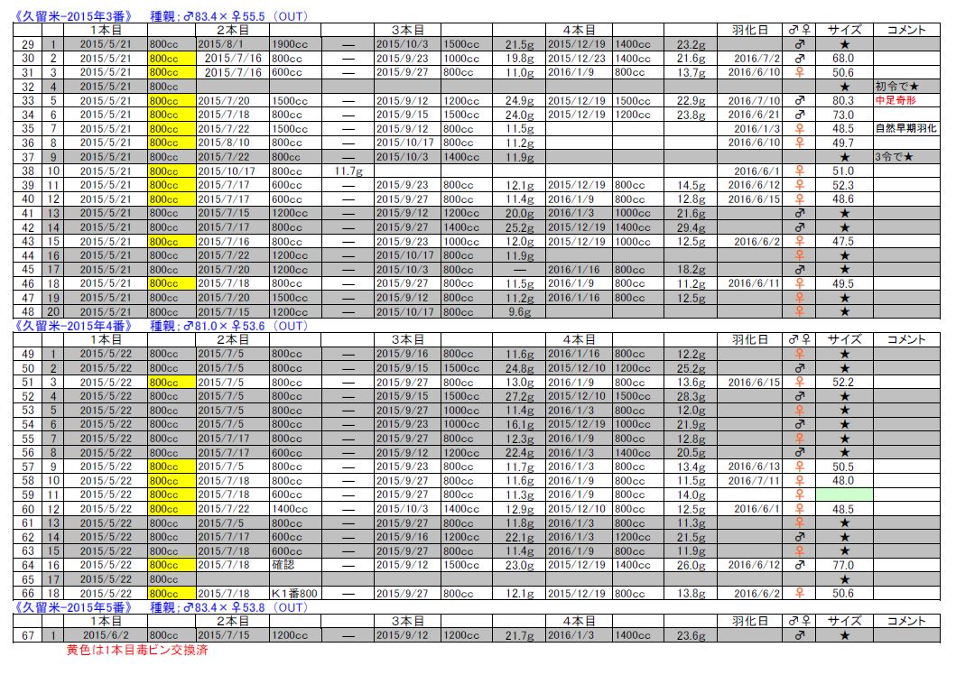 【画像2枚目】2016久留米-4番 種♂85.5×♀51.5 5/28初令投入⇒9/7交換(30.5g)